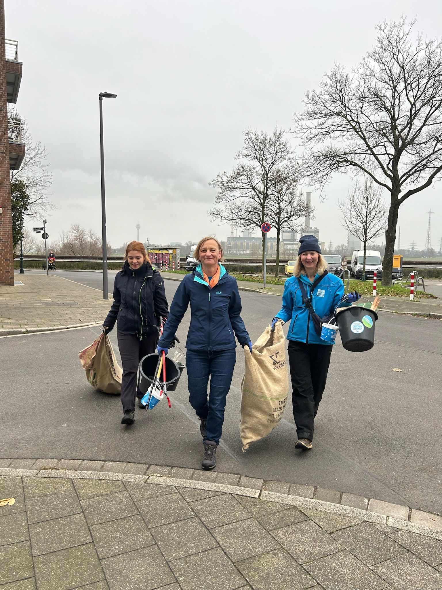 Rund 23 Helfer*innen haben sich uns angeschlossen. Startpunkt war diesmal der Kulturhafen Heerdt, von dort aus sind wir in verschiedene Bereiche des Viertels ausgeschwärmt. Die Aktion kam im Viertel gut an. Viele blieben stehen, kamen mit uns ins Gespräch und einige halfen sogar spontan mit.