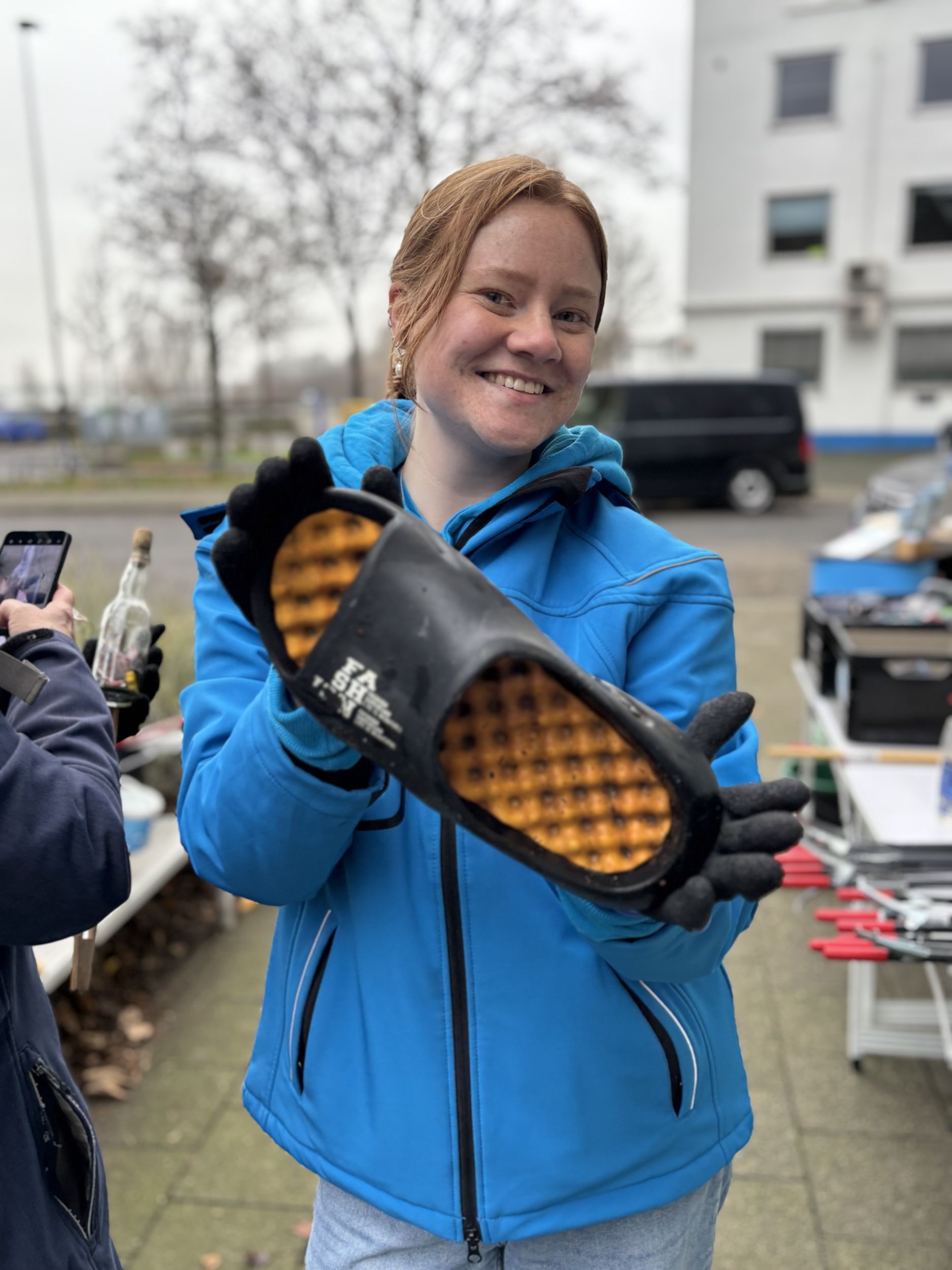 Nach dem Cleanup haben wir am Kulturhafen Heerdt einen Recycling-Workshop angeboten. Dort zeigten wir, wie aus Plastikmüll neue Produkte entstehen können. Besonders Kinder waren mit Begeisterung dabei und stellten aus geschreddertem Kunststoff neue Kreisel und Karabiner her. „Und das war alles mal Müll“ wurden wir da erstaunt gefragt. Ja, all das war einfach Müll – dabei kann daraus noch so vieles neu entstehen!