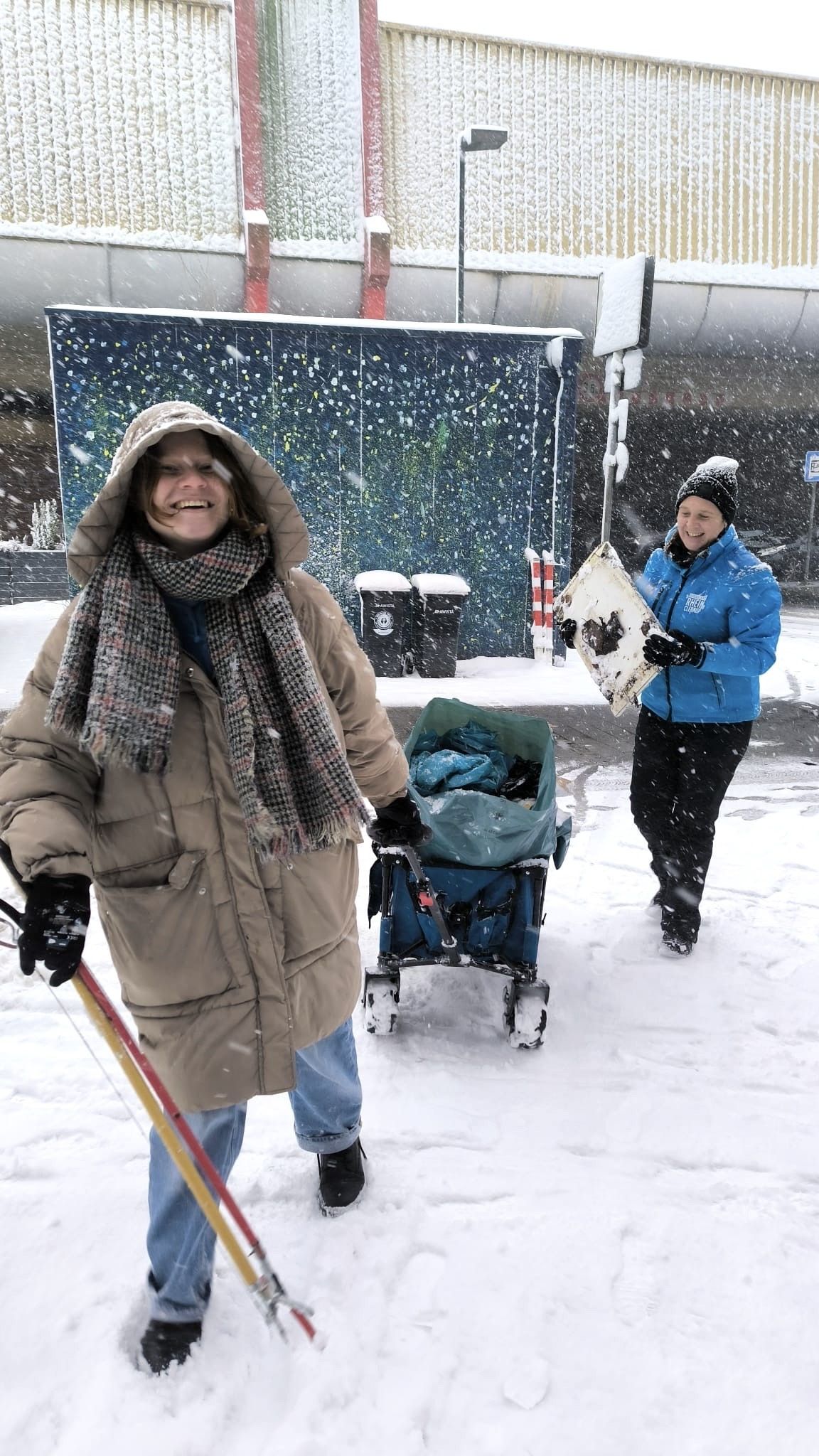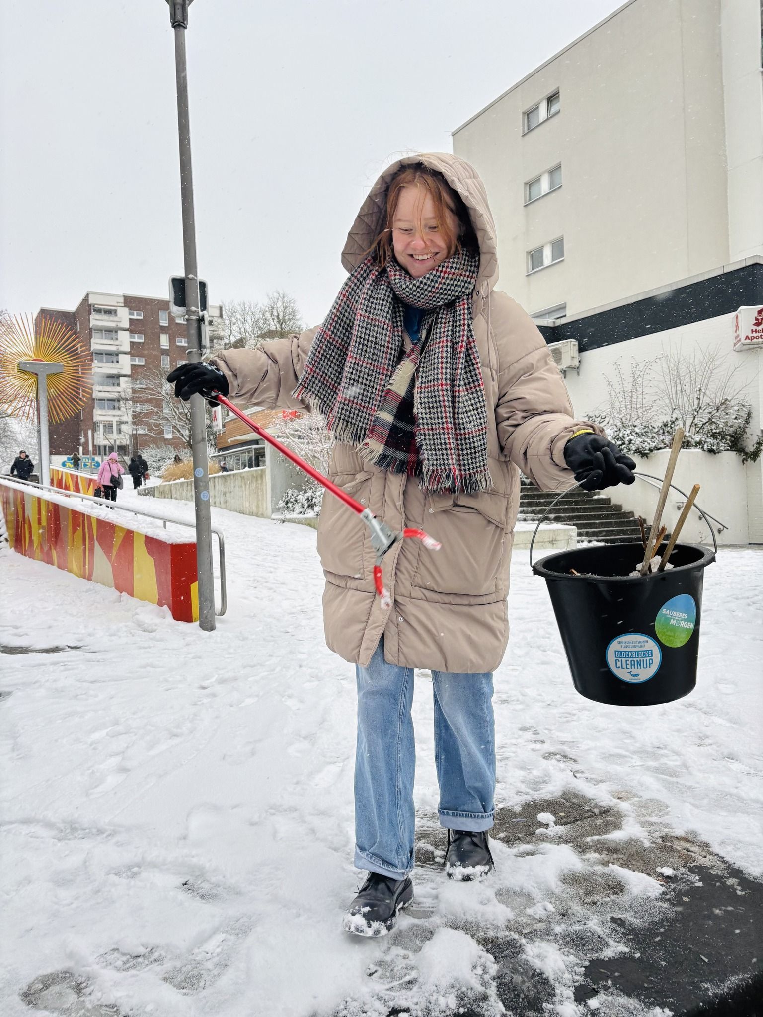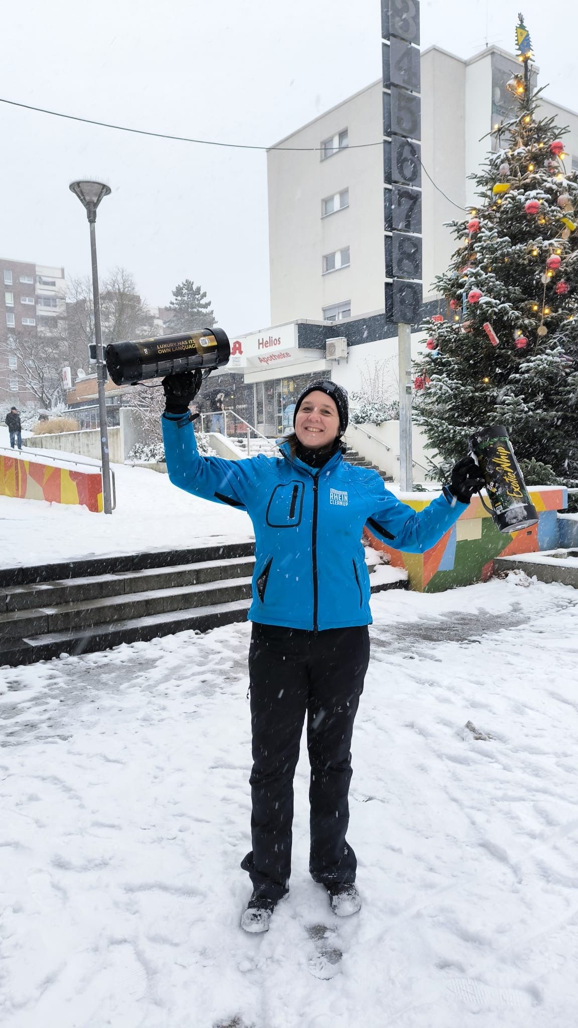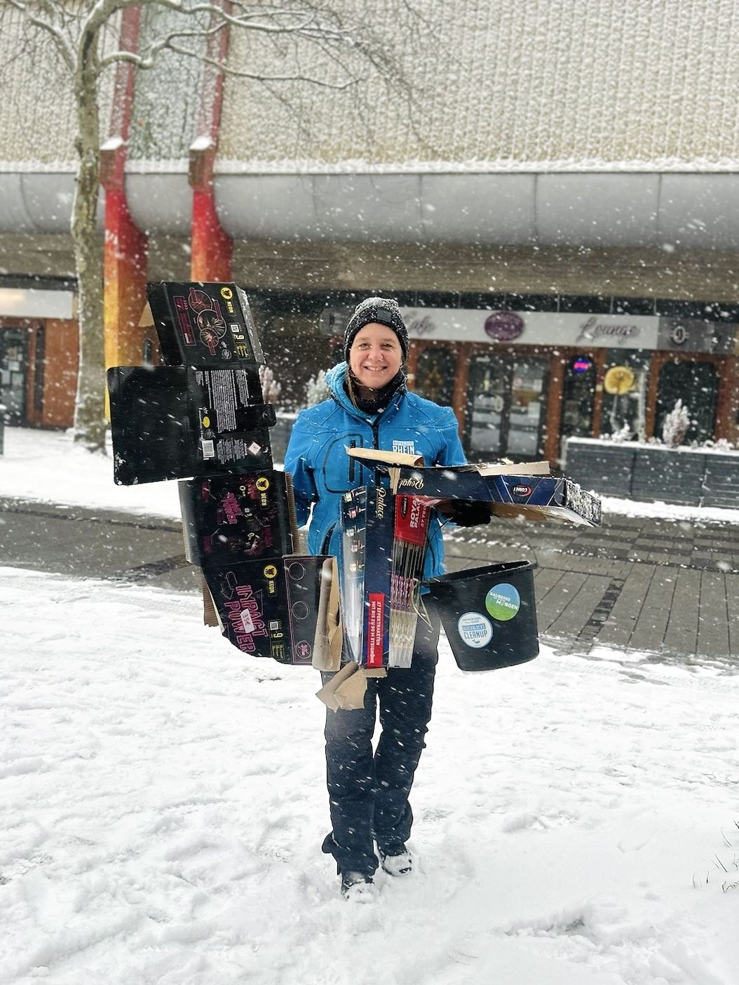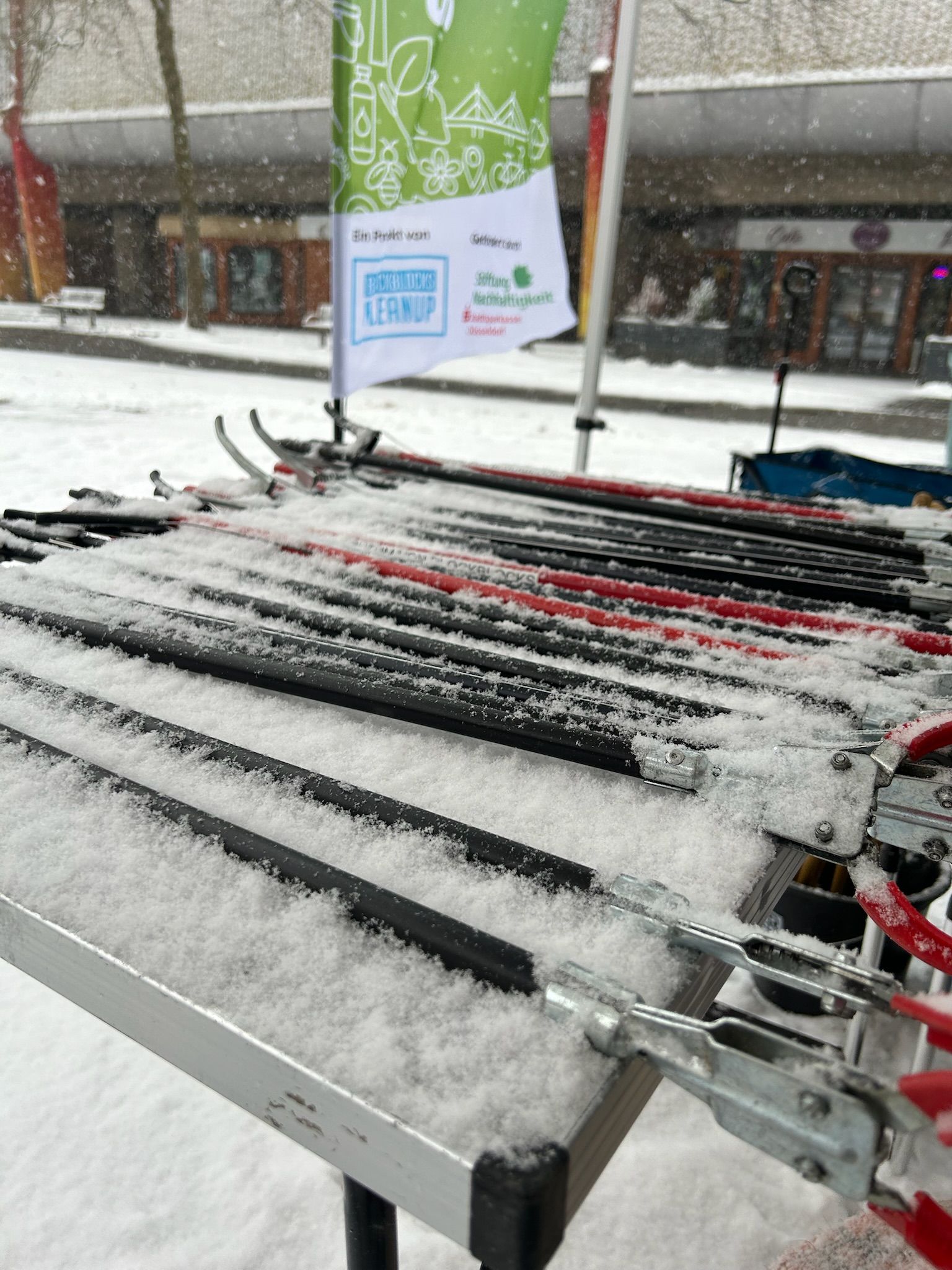 Trotz der extremen Wetterbedingungen ließ sich unser Team nicht aufhalten: Über drei Stunden hinweg, bei durchgehendem Schneefall, wurde Müll gesammelt, der größtenteils unter der dicken Schneedecke verborgen lag – in Gebüschen, auf Parkplätzen und rund um Parkbänke. Hier war eine wahre Müllspürnase und unsere Erfahrung für vermeintliche Müllecken gefragt!